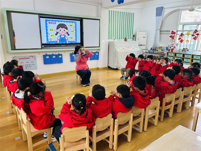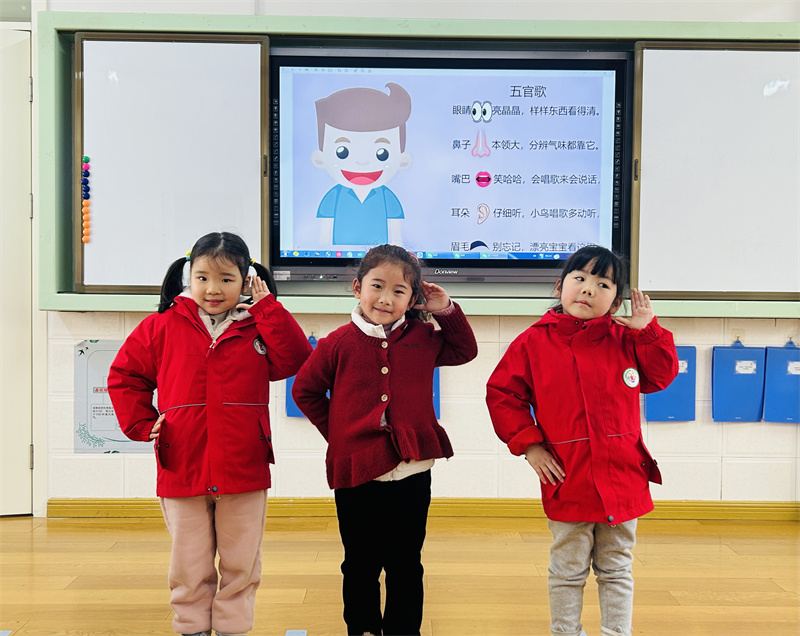 中班组的“五官朋友捉迷藏”活动热火朝天。“五官贴贴乐”环节中,孩子们将眼、鼻等贴片贴到正确位置,加深五官认知;“五官怕什么”讨论中,大家踊跃发言,意识到不良习惯的危害。最后孩子们一起学唱保护身体的儿歌,将健康知识内化于心。