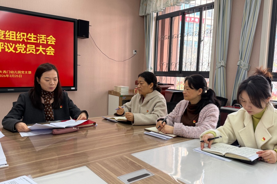 为深入学习贯彻习近平新时代中国特色社会主义思想,全面落实党的二十届四中全会精神。根据庐阳区教体局党委统一部署,2026年3月25日上午,合肥市大西门幼儿园党支部在畅和分园会议室召开组织生活会暨民主评议党员大会,会议由党支部书记孙兰兰主持,合肥市庐阳区教育体育局基教科卫芸主任莅临指导,全体党员、预备党员参会。