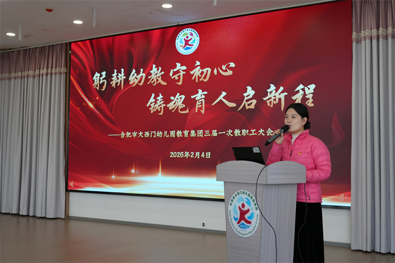 俯首甘为孺子牛,丰岁诗吟白雪歌。随着学期末的脚步悄然而至,我们又来到了岁末年尾。2025年是合肥市大西门幼儿园教育集团凝心聚力、砥砺奋斗的一年;更是落地有声、乘势而上的一年;在各级领导的关怀和指导下,大西幼人用奋斗和汗水凝结出累累硕果,用坚守和辛劳描绘着美丽蓝图。2026年2月4日下午,合肥市大西门幼儿园教育集团隆重召开“骏业日新承初心 师者同行向未来”三届一次教职工大会及总结会。大西幼教育集团党支部书记、园长孙兰兰带领全体教职工齐聚固镇路分园,回顾来时路,展望新征程。