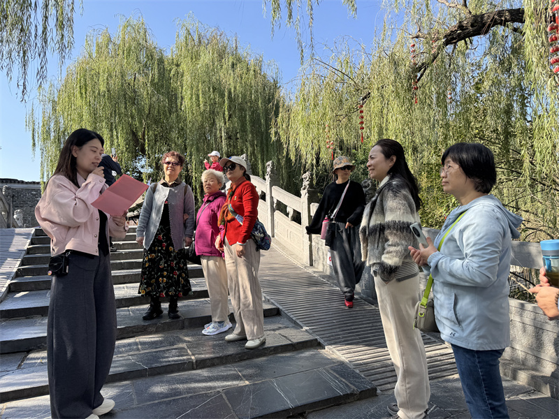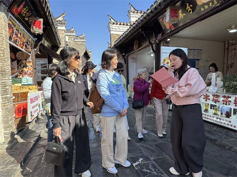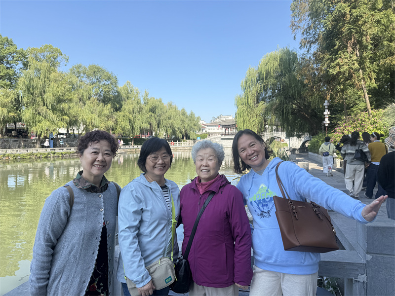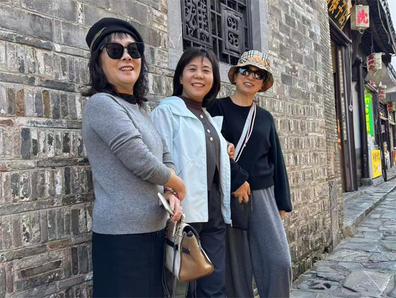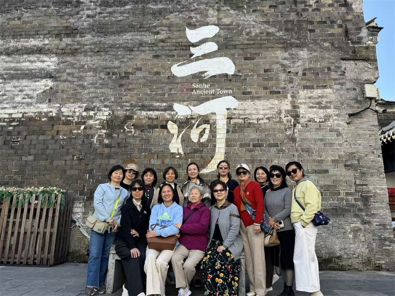 “三河古镇”历来以其古老、秀丽、繁华而闻名于世。镇内的古街、古桥、古民居、古茶楼等,印证着三河的古老。退休教师们兴致盎然地游览了古镇街巷,了解了建筑风貌与历史底蕴,他们一边感受着“小江南”的文化,一边品尝特色小吃,还不时地驻足留影。古巷、石桥与秋日景致相映,退休教师们一路交流畅谈,氛围轻松惬意。