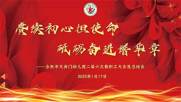 星奔川骛,岁聿云暮。载着勤奋耕耘的喜悦,我们又一次站在了年终的门槛上回望。2024年,是满载而归、成果丰硕的一年。大西幼全体教师以不懈的奋斗和辛勤的汗水,铸就了辉煌的成绩,用坚定的信念和无私的奉献,勾勒出一幅幅绚丽的画卷。为总结过往,启航未来,在合肥市大西门幼儿园教育集团党支部书记、总园长张秀兰的统一部署下,大西幼教育集团于2025年1月17日下午,隆重举办了以“赓续初心担使命 砥砺奋进谱华章”为主题的二届六次教职工大会及年度总结大会,全体教职工齐聚森林城分园三楼音乐厅,共同回顾过去一年的收获与成长,展望新一年的美好未来。会议由大西幼教育集团工会副主席孔丽丽主持。