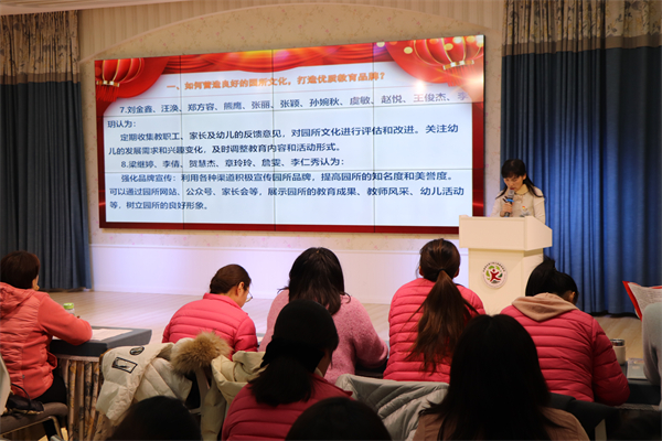 为推进幼儿园民主建设,深化园所民主管理,增强创新发展内驱力,展现“园所发展、人人谋划”的主人翁意识,张园长就教职工们提交的提案进行答复。集团四园共计收回提案222份,张园长围绕“如何营造良好的园所文化,打造优质教育品牌、可以采取哪些措施更好地实现集团化办学资源共享、优势互补、互惠互助、同步发展”两个提案进行答复,并表示:新的一年集团及班子成员将继续履行职责,围绕教师的提案,在更高站位去审视,从更大格局去谋划,以更实举措去推动落实各项工作,把涉及教职工切身利益的问题摆在眼前,记在心间,解决好、落实到,为全体教职工的工作、生活、学习等提供良好的条件与便捷,不断提高教职工的热情与激情,提升教职工的幸福感与获得感。