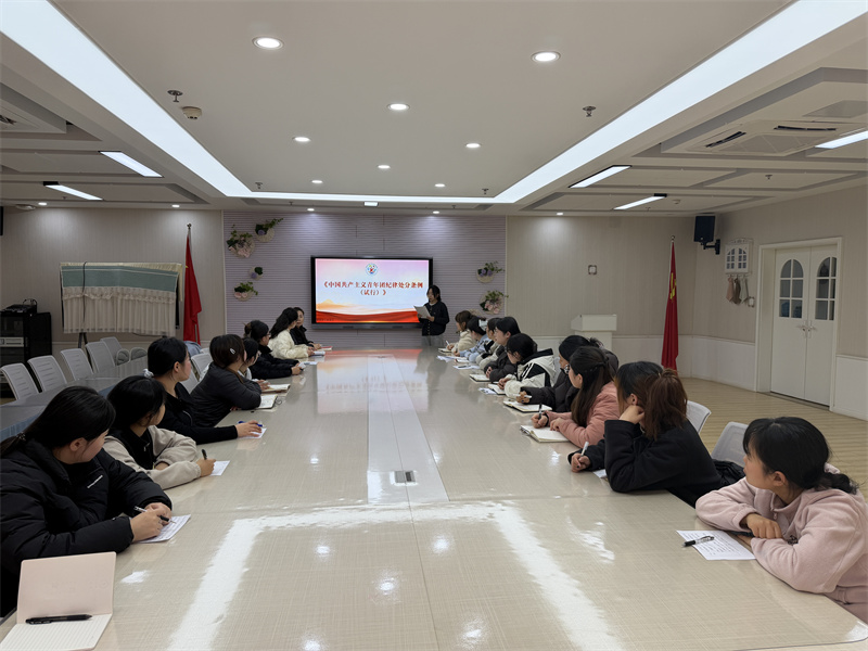 会前,全体团员通过个人自学、党小组集中研讨等形式,系统学习了习近平总书记关于全面从严管团治团的重要指示精神、《中国共产主义青年团章程》等核心内容。会上,全体人员聚焦《中国共产主义青年团纪律处分条例(试行)》开展集中理论学习,通过逐章逐条学习、关键条款解读、典型案例研讨等形式,团员教师们深刻领会《条例》作为加强团的纪律建设、严格团的纪律执行重要保障的核心要义,明确了共青团员在教育战线应坚守的政治底线与行为准则。