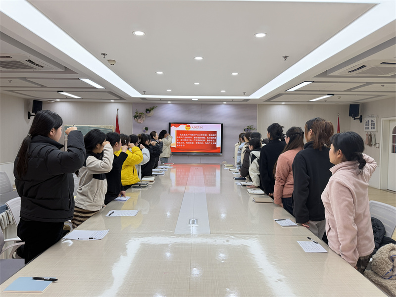 会议最后,全体团员教师面向鲜艳的团旗,在团支部书记的领读下,高举右拳、庄严宣誓:“我志愿加入中国共产主义青年团……” 铿锵有力的誓词回荡在会场,既是对入团初心的重温与坚守,更是对新时代使命的承诺与担当。