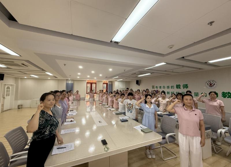 “学高为师,身正为范。”在庄严的师德宣誓环节,全体教师郑重承诺:“我志愿做一名幼儿教师,恪守职业道德,热爱教育事业,关爱每一位幼儿……”铿锵有力的誓言在会场回荡,展现了教师们对教育事业的忠诚与担当。