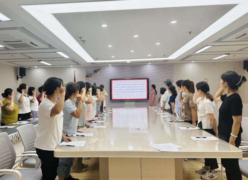 金秋送爽,丹桂飘香。为保障新学期工作有序开展,提升教师队伍专业素养与职业道德水平,2024年8月29日,合肥市大西门幼儿园教育集团森林城分园,召开了新学期教职工大会暨师德师风专题培训活动。全体教职工共同参与,并郑重签订《师德师风承诺书》,为新学期工作做好充分准备。