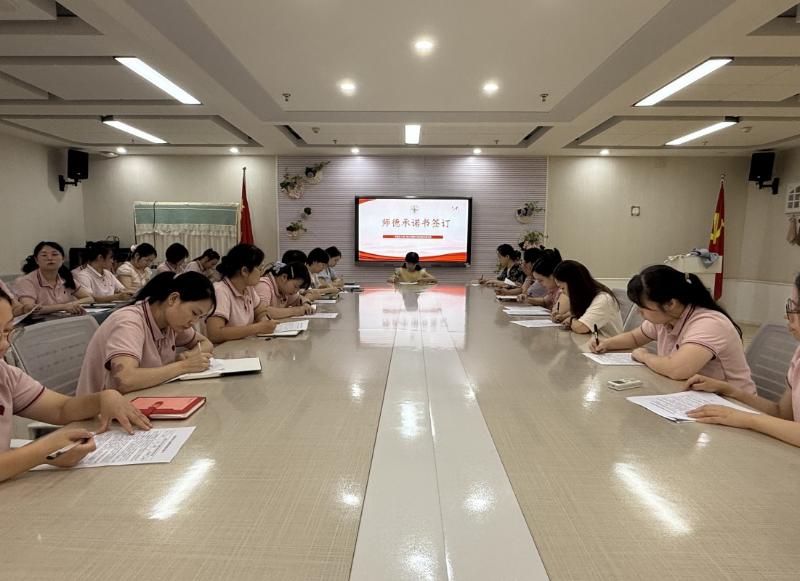 宣誓结束后,全体教职工签订了《师德师风承诺书》。这份承诺书从职业道德、专业发展、廉洁从教等多个维度明确了教师的职责要求。签字现场庄重而严肃,教师们纷纷表示,这不仅仅是一纸承诺,更是一份沉甸甸的责任,将用实际行动践行诺言,接受社会各界的监督。