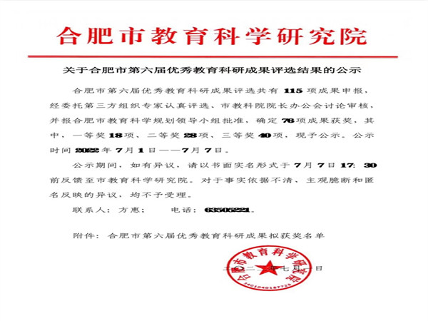 喜报:大西幼教育集团喜获合肥市第六届优秀教育科研成果评比一等奖