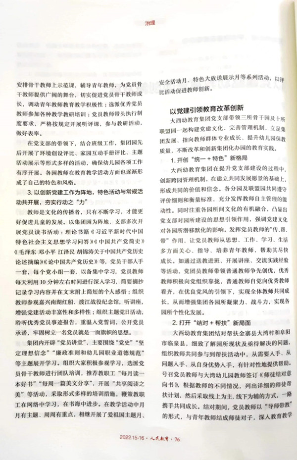 喜报:大西幼教育集团市级党建课题阶段性研究成果登上《人民教育》刊