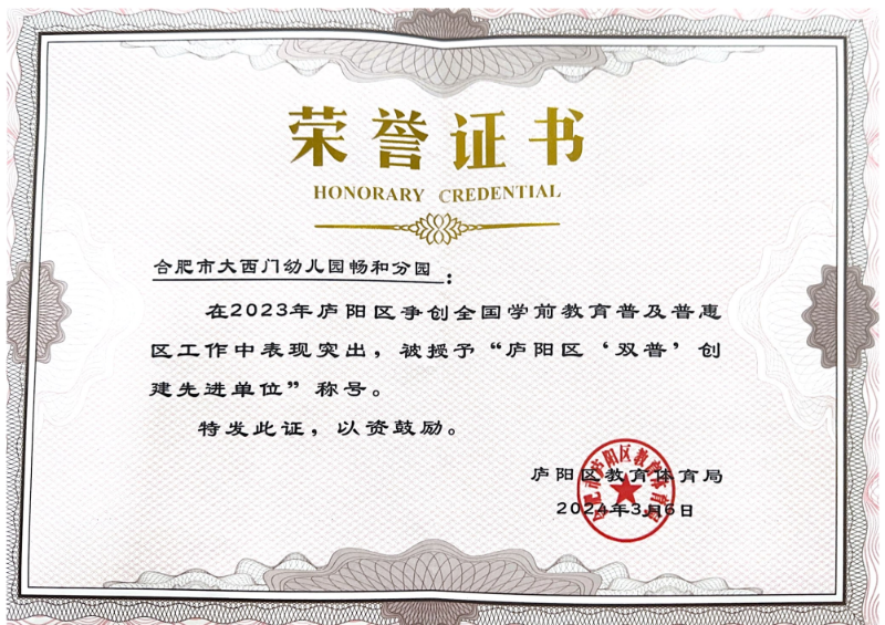 大西幼教育集团畅和分园在集团园的引领下,坚持以幼儿为本,师德为先,加强教师职业道德教育,重视幼儿身心健康,大力提升教师素质能力,规范办园行为,切实落实“双普”各项工作目标任务;坚持以游戏贯穿幼儿的一日活动,抓紧抓实保育教育各项工作;以“抓防范,保安全”为重点,增强自身的责任意识,扎扎实实地把幼儿园安全工作做实、做细,办让幼儿开心、家长放心的普及普惠之园。