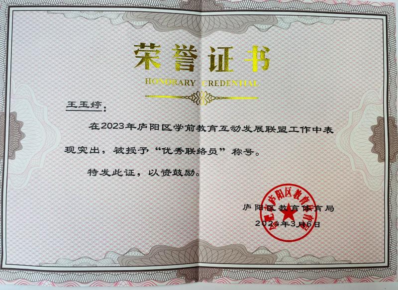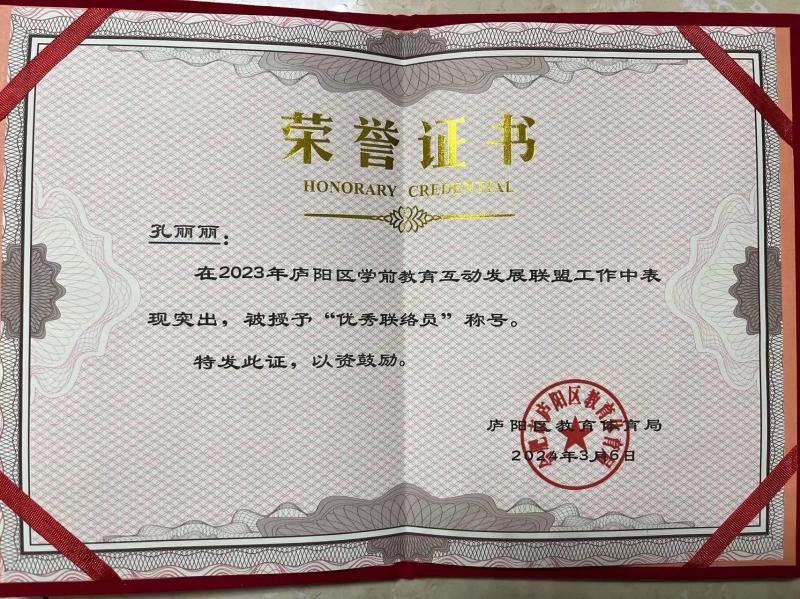 大西幼教育集团森林城分园孔丽丽作为“联络员”,积极配合落实上级部门相关工作,做到上传下达,分解落实每项工作,整理各项文件材料,精准传达、及时反馈。同时,经常到民办园所对其进行规范办园检查,对园所安全、食堂管理、保教活动、教职工权益、收费等方面给出科学、合理的指导。孔老师不管是在工作期间还是休息时间,都始终怀着热爱与责任之心,为大西幼联盟联络工作做好服务保障,充分发挥联盟纽带桥梁作用,有效地促进了联盟内幼儿园均衡发展。
