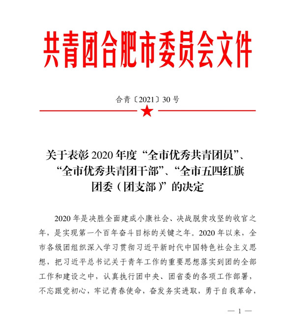 喜报!合肥市大西门幼儿园教育集团团支部荣获2020年度“合肥市五四红旗团(总)支部”荣誉称号