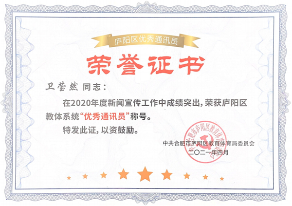 喜报!合肥市大西门幼儿园教育集团荣获庐阳区教育系统2020年度新闻宣传工作“最佳单位”称号