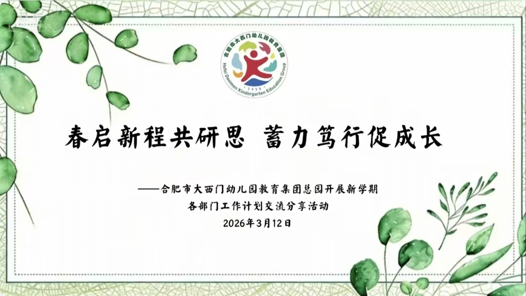 为明晰新学期工作方向,夯实保教工作根基,2026年3月12日,合肥市大西门幼儿园教育集团总园在党支部副书记胡仪艳、保教副主任赵悦的组织下,开展新学期各部门工作计划交流分享活动。