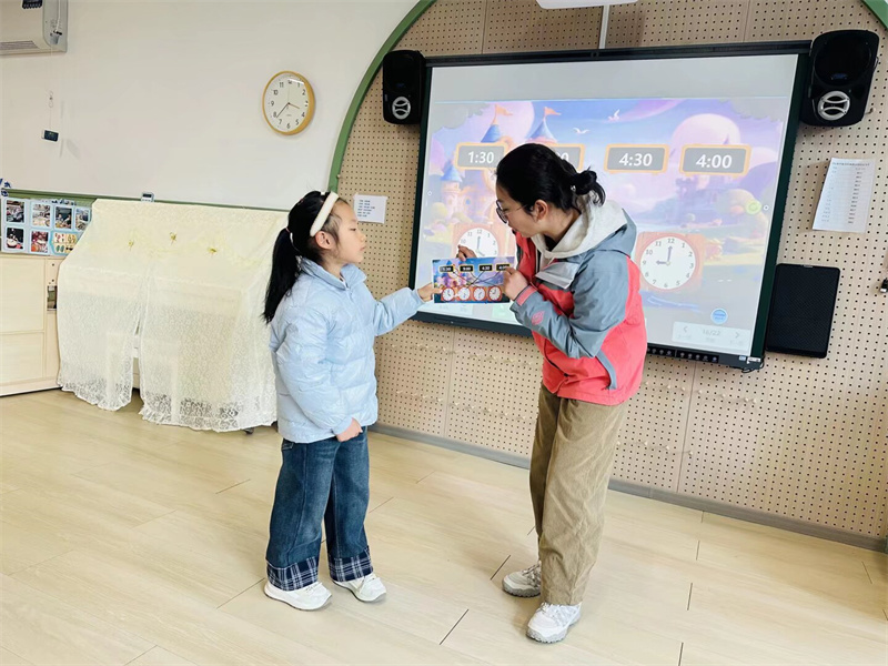 一研活动,小班以经典绘本《好饿的毛毛虫》为载体,聚焦“计数”核心经验,以“手口一致地点数5个以内的物体,并能说出总数”为目标要求。中班围绕“集合与分类”核心经验,设计了“能感知和发现常见几何图形的基本特征,并能进行分类”的发展目标。大班以“时钟”为主题,聚焦“测量”核心经验,以“探秘时间”为情境,引导幼儿认识时钟的结构,初步感知整点、半点的含义。