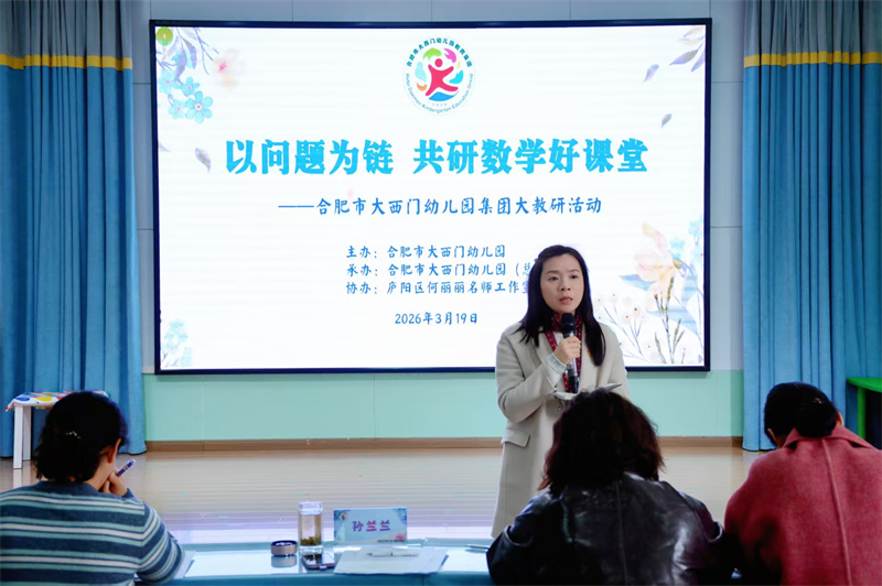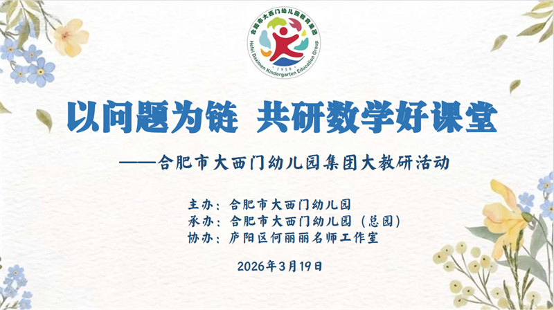 为深化“一课多研”教研成果,推动教师对数学核心经验的深度理解与实践转化,2026年3月19日上午,合肥市大西门幼儿园在党支部书记、总园长孙兰兰的带领下,在总园音乐厅开展“以问题为链 共研数学好课堂”集团大教研活动。