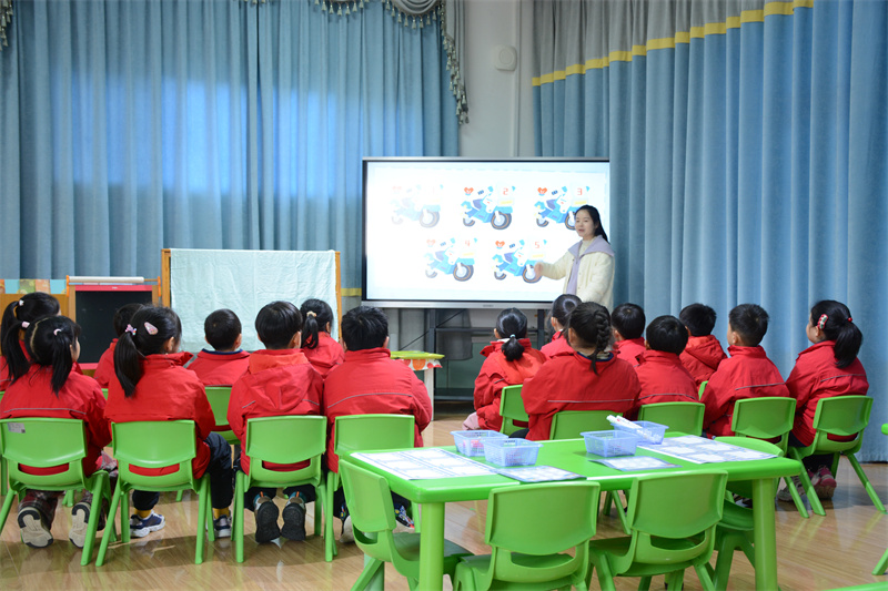 观摩环节,四位执教教师立足幼儿年龄特点,将抽象的数学核心概念融入情境化、生活化的教学实践。中班数学《森林舞会》中,幼儿在情境中尝试发现不同的排序规律,乐于参与操作活动;大班数学《猪妈妈的超市》里,幼儿通过观察物体的形状、大小和颜色差异,尝试逐级分类并准确讲述分类标准;大班数学《图形组合》引导幼儿运用旋转、组合的方法进行图形匹配,在探究中感知整体与部分的关系;大班数学《逛超市》则让幼儿在模拟购物中理解8的分合与加法关联,尝试运用加法解决实际问题。四节活动设计层层递进,充分体现“幼儿在前”的教育理念,也为后续研讨提供了鲜活的观察样本。