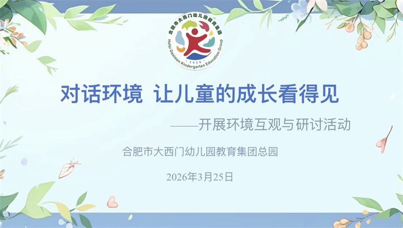 为提升区域环境创设与材料投放的科学性,促进幼儿深度学习,2026年3月25日,合肥市大西门幼儿园教育集团总园在副园长胡仪艳和保教副主任赵悦的带领下,开展了以“对话环境 让儿童的成长看得见”为主题的环境观摩研讨活动。