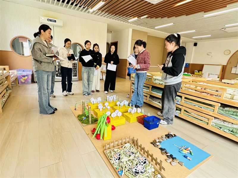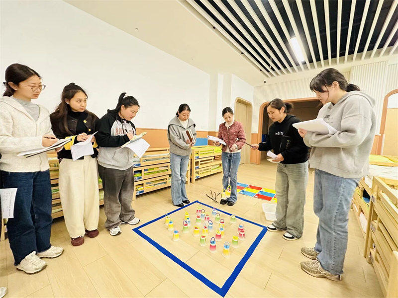 为支持幼儿在数学区域活动中的深度学习,提高教师对幼儿数学领域核心经验及学习路径的精准把握,2026年4月10日,合肥市大西门幼儿园教育集团固镇路分园保教副主任赵梓莹带领老师们开展了数学区创设与材料投放观摩活动。