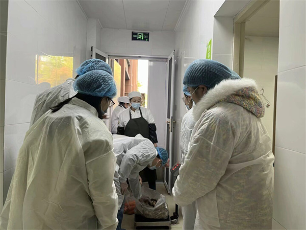 随后,家长代表们走进食堂后厨,对操作间的卫生环境、食品储存、餐具消毒及“明厨亮灶”系统进行了实地考察。食堂工作人员现场演示了食材清洗、切配及烹饪流程,透明的操作流程和规范的卫生管理得到了家长的一致认可。家长们纷纷表示:“亲眼看到食材从验收到加工的全流程,对幼儿园的食品安全管理更有信心了!”