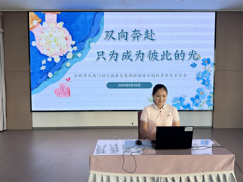 夏尽蝉鸣远,秋来影斑斓。日渐长大的宝贝们,即将离开家长的怀抱,进入到幼儿园的生活,开启一段崭新的人生之旅。家长朋友们对于孩子初入幼儿园或是新奇,或是期待,或是担心,为了使家长了解我园的办园理念以及课程,帮助家长们树立正确的教育观、放下心中的焦虑,密切家园合作,让幼儿能尽快适应幼儿园生活。2025年8月28日上午,合肥市大西门幼儿园教育集团固镇路分园召开了2025年秋季托、小班新生线上家长会。会议由家长学校张兰主持,执行负责孔丽丽进行会议内容汇报。