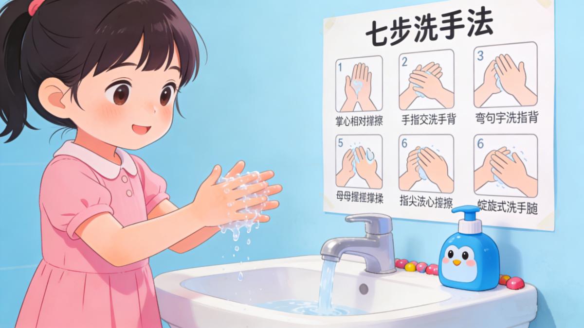 1. 勤洗手、讲卫生:引导孩子养成“七步洗手法”,饭前便后、外出归来、咳嗽打喷嚏后及时洗手,避免用脏手触摸口、鼻、眼。