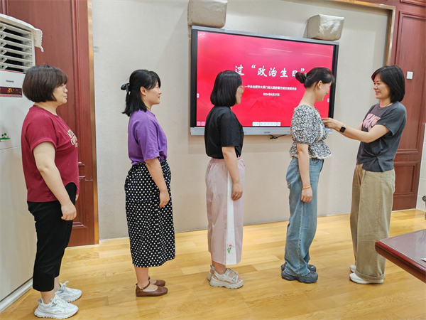 6月27日,党支部发放了政治生日贺卡,为入党时间在6月至7月的党员过了一次集体“政治生日”,周园长还帮每位党员佩戴了党员徽章。在随后召开的集体座谈会中,党员同志们更是表达了作为党员的自豪感与责任感,立志要继续兢兢业业为人民服务。会后,大家集体观看了红色电影《英雄儿女》,再一次重温了全国人民万众一心抗美援朝、保家卫国的英雄气概与家国情怀。