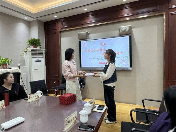 周园长为家委会、伙委会委员颁发了聘书,她希望家委会、伙委会委员能履行好各自的职责,做好全园家长的代言人,及时反馈家长的心声,做家园联系沟通的桥梁和纽带。