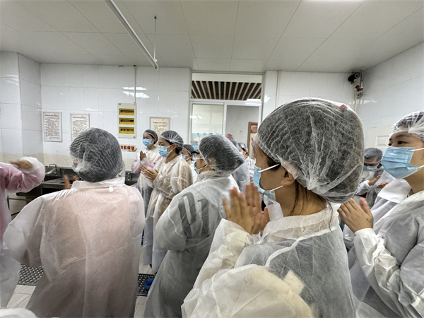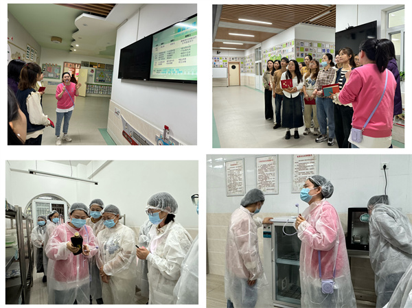 最后,为了让家长更加全面了解园所膳食管理工作,近距离了解食堂的日常工作情况,幼儿园邀请家委会、伙委会委员一起走进幼儿园食堂,实地参观了食堂内的粗加工间、操作间、备餐间、食品仓库等区域。参观过程中,食堂管理员轩老师结合食堂一日操作流程向家长们详细介绍了幼儿园食品采购、验收、加工、配备、留样及卫生消毒等工作细节。卫生整洁的环境、科学规范的操作、细致严格的膳食管理工作均获得了家长们的一致好评。
