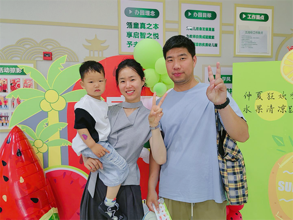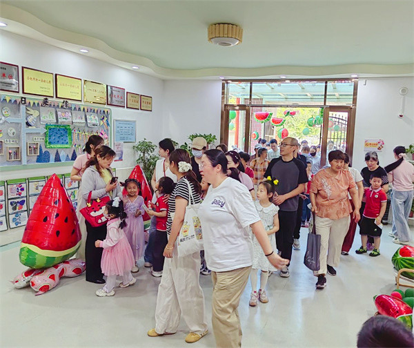 清晨,爸爸妈妈拉着孩子们的小手,踏着轻快的脚步来到幼儿园,瞧!他们已经迫不及待地摆好自己喜欢的姿势要与西瓜合影,一场沉浸式的亲子游园活动即将拉开序幕!