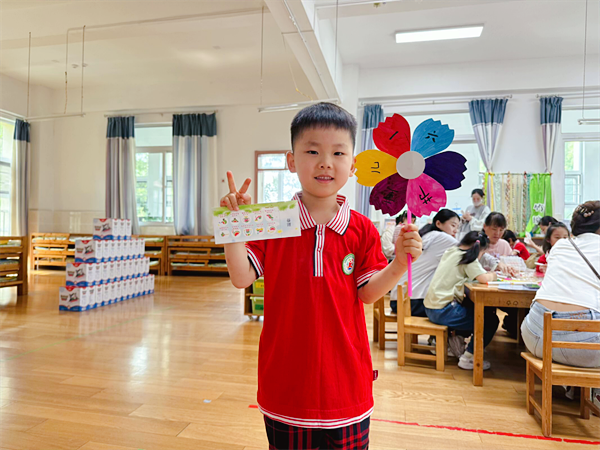 如果风是有颜色的,那一定是五彩缤纷的。在“瓜趣风坊”手工活动中,孩子们迫不及待地开始组装、设计大风车,有的孩子画出了圆圆的西瓜,还细心地加上了西瓜籽;有的孩子则画出了切开的西瓜,红红的果肉让人垂涎欲滴。除了西瓜,孩子们还添加了各种夏日元素,比如太阳、云朵、蝴蝶、小花朵等。这些创意元素让大风车变得更加生动有趣,仿佛一个个充满童趣的小世界。