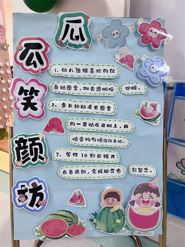 来“瓜瓜笑颜坊”,邂逅西瓜主题童趣时光!孩子们从萌趣西瓜图案贴里,选到最爱的那一款。无论是俏皮西瓜精灵还是萌萌西瓜籽都别具风味。选好后撕下保护膜,家长帮忙贴在孩子可爱的脸蛋上。贴妥后撕下底纸,专属西瓜印记就有啦!最后亲子美美合影,定格甜蜜瞬间。图