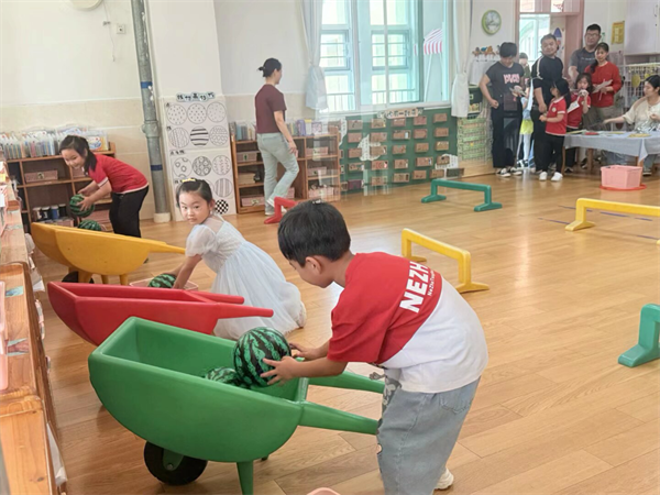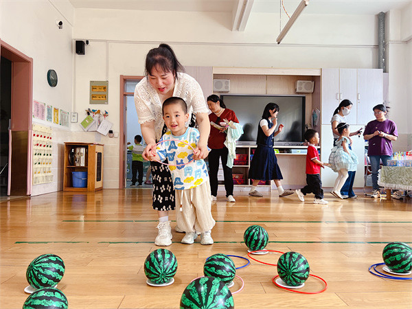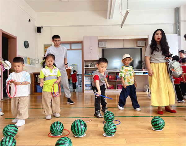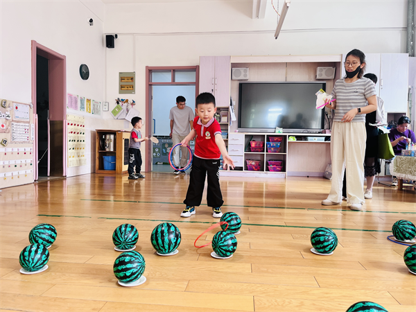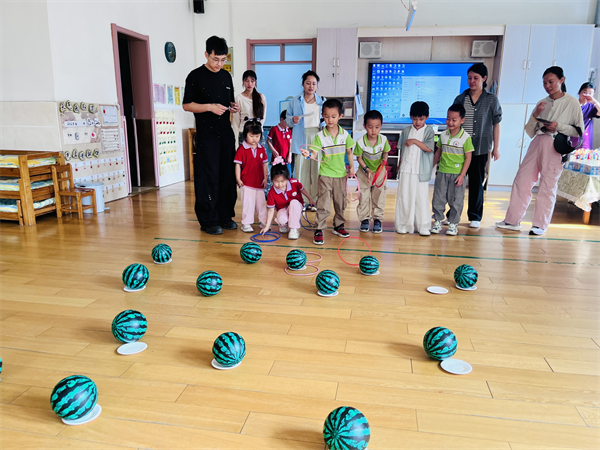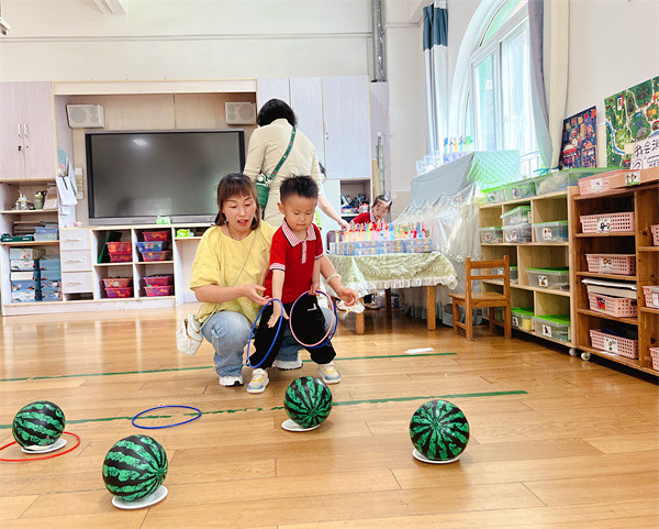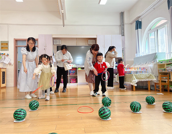 游戏玩不停,欢乐不打烊。老师们围绕“西瓜”设计了各种趣味游戏。