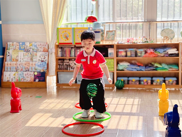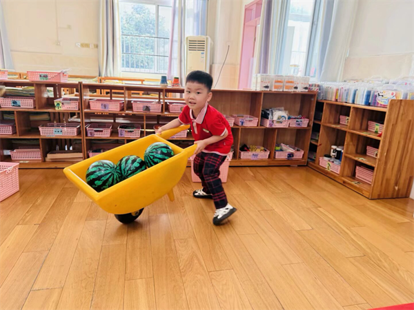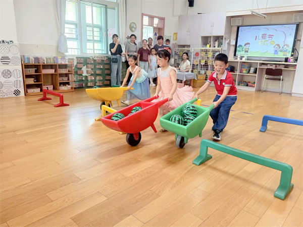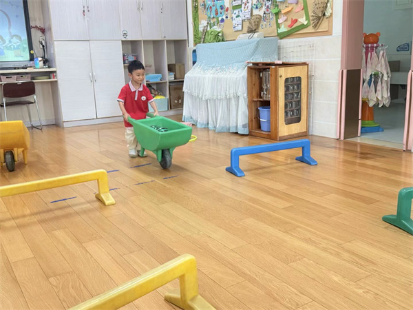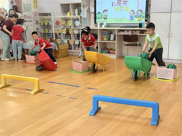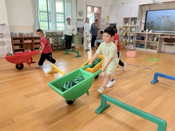 大西瓜圆滚滚,****运输忙。在“西瓜好运来”游戏中孩子们都变身成小小搬运工啦。首先需要将西瓜放入小推车内,推着小车绕过障碍物,把西瓜运至终点即完成游戏,听好游戏规则后,孩子们就准备出发啦!在穿越障碍物的过程中,他们一个个想尽各种各样的方法把西瓜进行传送,灵活地调整步伐与方向,凭着顽强的毅力和不服输的精神,努力到达终点。
