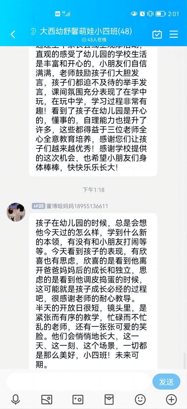 活动结束后,家长们纷纷发表自己的感想和体会,“感谢老师们的用心,看到孩子们在幼儿园的点滴成长,真心感受到老师们满满的爱”“真的很欣喜与感动,看到孩子们在园的一日生活,真心的感受到老师们的不易,孩子们的每一次进步都离不开你们的辛苦付出与谆谆教诲!”家长们纷纷表达着对老师辛苦付出的感激和肯定,言语间透露着感受孩子们成长的惊喜和进步。
