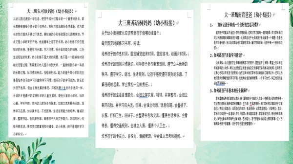 接着,幼儿园保教室副主任季云根据之前家委会代表收集的有关“幼小衔接”的焦点问题,围绕什么是幼小衔接、幼小教育的差别、幼小衔接的内容及幼小衔接的方法等方面,和大家分享了《幼小衔接 携手同行》知识讲座。季主任说道:“幼小衔接中各位家长要激发孩子的学习欲望,而不是一味苛求......”