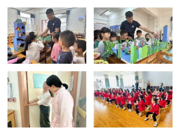 家长们来自各行各业,他们根据自身的专业和特长,精心备课,准备了丰富多彩的图片、视频资料、实物操作材料和玩教具等,通过有趣的形式,借助自身的生活经验和工作实践,为孩子们带来不一样的课堂体验。这些由家长参与设计、授课的安全教育活动包含防拐、防烫、防溺水、食品卫生、防震减灾、交通安全、消防安全等内容。