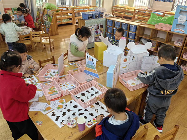 “区区”小事,“角角”生辉!每一位孩子都专注地与材料互动,尝试通过自我操作的方式进行主动探究,在与材料的不断“对话”中获得新的知识经验。观摩教师仔细倾听、细心观察,对照《幼儿园保育教育质量评估指南》从区域材料的投放、教师的支持与回应以及分享评价等方面进行针对性的观察和记录。观摩结束后,课题组成员齐聚二楼会议室,课题负责人丁露露老师根据课题研究计划安排了课题组接下来的重点工作,分工明确,责任到人,并指导课题组成员在进行观察实录时的注意事项,要求内容真实丰满,为课题组成员接下来撰写论文活动指明了方向。
