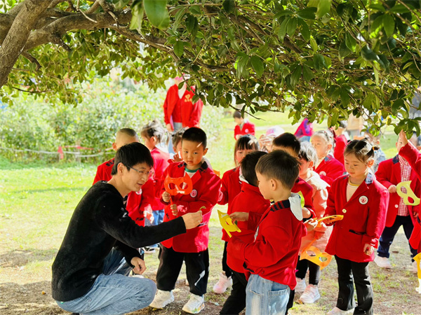 中班组的幼儿拿着画笔和画纸,来到户外写生,用画笔记录秋日的美好颜色。当孩子们正投入活动中的时候,一群由家长志愿者扮演的“诱拐者”出现了!“诱拐者”用美食、玩具或花言巧语等骗术进行“骗拐”。大部分孩子们表现出较强的防范意识和高度警惕性,对陌生人不予理睬,甚至还主动提醒并阻止其他小朋友接受陌生人的东西或跟随其离开。