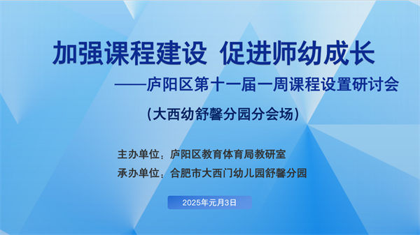 行稳致远,扬教研之帆;共思共享,绽幼教之彩。本次一周课程设置研讨会各园充分展示了自己在课程建设中的探究与成果,分享了成功的经验,促进了园际的交流与互鉴。乘此东风,庐阳区各幼儿园教师将继续深化今日之所学、所思、所悟,以求真务实的态度,蓄力再前行,让一周课程回归幼儿,落到实处,让课程真正成为孩子们自主探索、多元发展的欢乐天地。