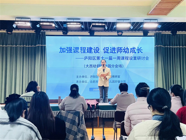 为聚焦课程建设,促进师幼共同发展,持续激发庐阳区学前教育发展的内生动力,十余年来,庐阳区教体局教研室深耕课程建设质量提升,强化课程建设日常管理与落实,助推学前教育高品质发展。2025年1月3日上午,由庐阳区教体局教研室主办、合肥市大西门幼儿园舒馨分园承办的“加强课程建设,促进师幼成长”庐阳区幼儿园第十一届一周课程设置研讨会第一场,在合肥市大西门幼儿园舒馨分园音体室举行,庐阳区幼教教研员方明惠莅临指导,庐阳区人民政府教育督导委员会督学王萍、各园业务园长、保教主任、教研组长及骨干教师参加了会议。会议由合肥市大西门幼儿园舒馨分园教师王童宇主持。