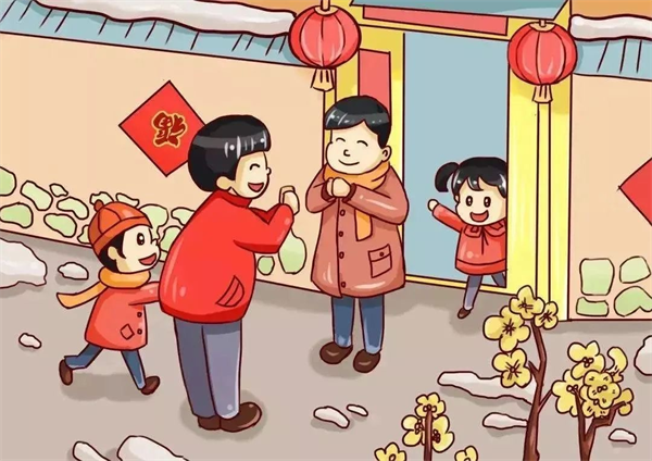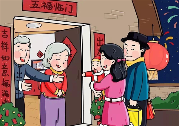 春节期间走访拜年是年节传统习俗之一,初二、三就开始走亲戚看朋友,相互拜年联络感情,道贺祝福。