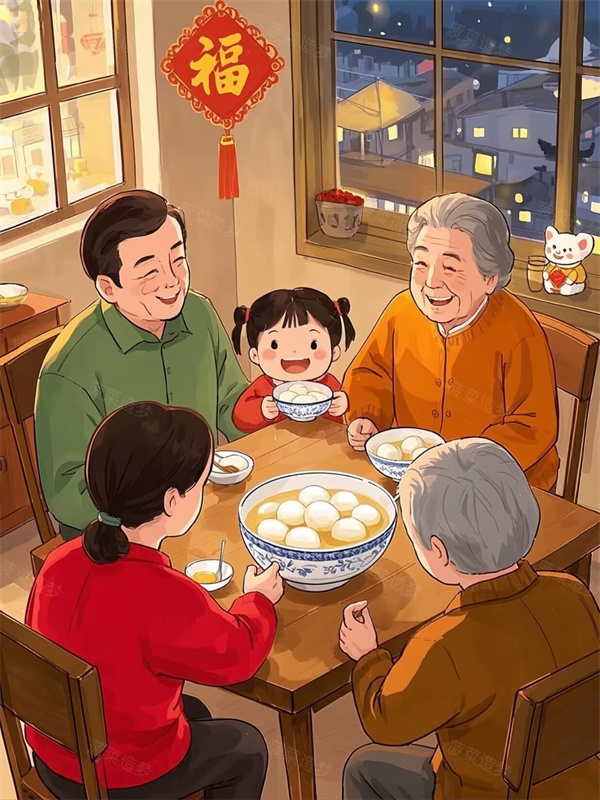 春节期间吃汤圆,象征家庭和谐、吉祥。民间有“吃了汤圆大一岁”之说。