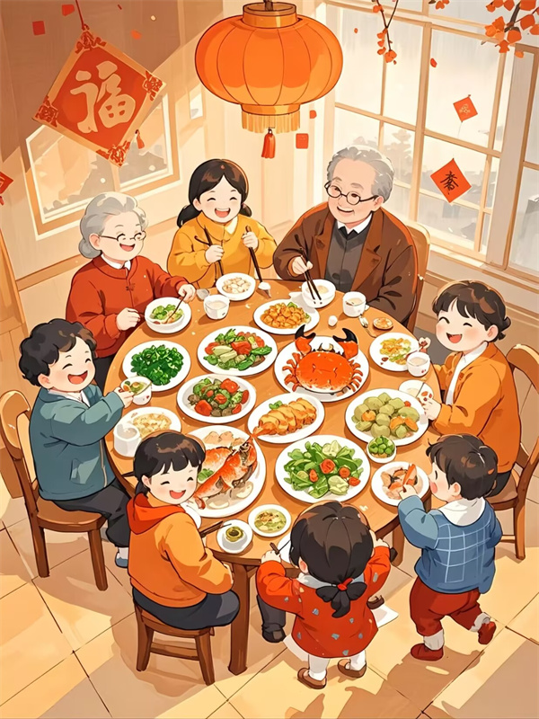 年夜饭,又称年晚饭、团年饭、团圆饭等,特指年尾除夕的阖家聚餐。在外工作的人都会在除夕来临之前回老家和家人团聚。年夜饭是家人团圆聚餐,这是对家人来说最重要的一餐。年夜饭,吃的是喜悦,品的是亲情,缕缕饭香中闻的是家的味道。一家老小围坐餐桌旁,倍感幸福。