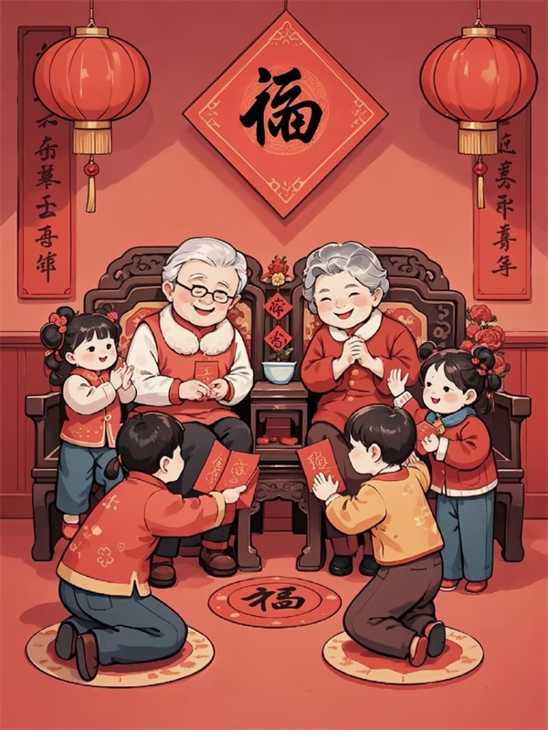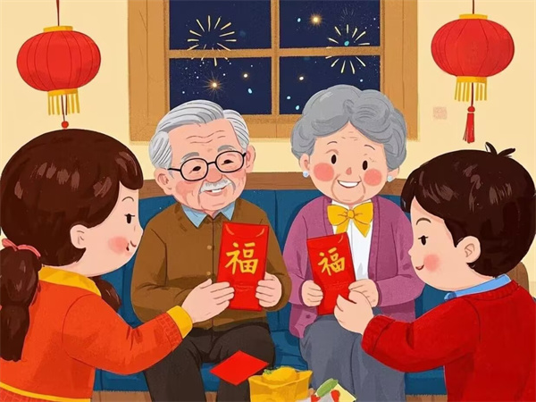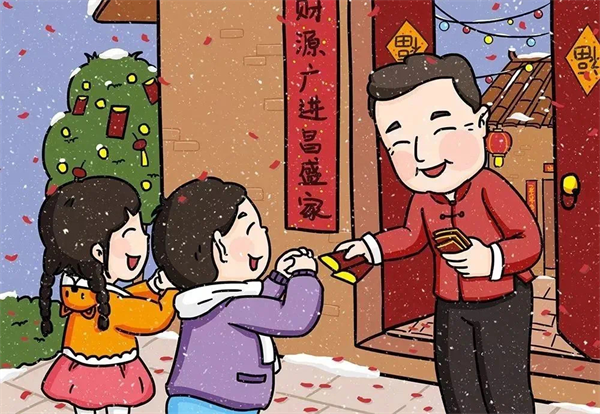 年夜饭后,长辈要将事先准备好的压岁钱分给晚辈,压岁钱寓意“压岁祈福”,其寄予了长辈们对孩子们成长的美好祝福。