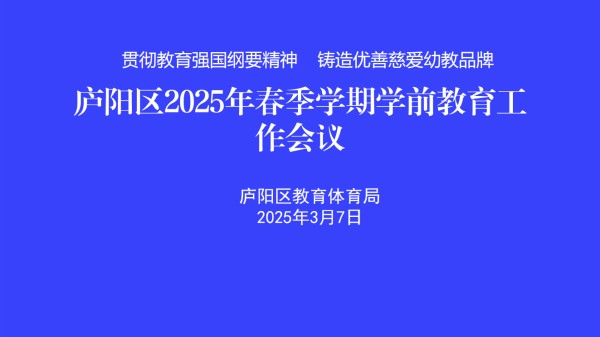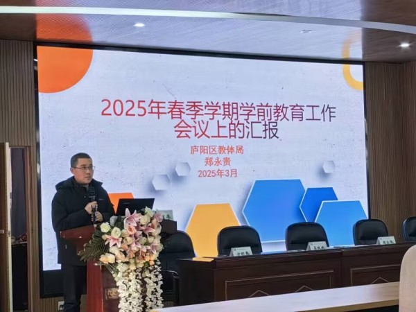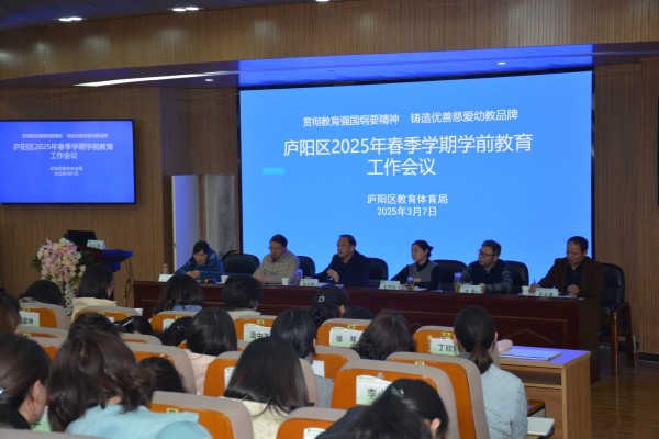 春和景明,万物竞发。为深入贯彻教育强国战略部署,打造庐阳学前教育优质发展的标杆品牌,2025年3月7日,庐阳区教体局在合肥市南国花园小学和煦园校区召开春季学期学前教育工作会议。庐阳区教体局党委书记、局长周宗华出席会议并讲话,会议由局党委委员朱晓艳主持,督导室主任李睿、学社办主任吴启恩、法制安全科科长吴珠庆、幼教教研员方明惠等科室部门负责人,及全区公办、民办幼儿园园长参加会议。本次会议由大合肥市大西门幼儿园舒馨分园承办。