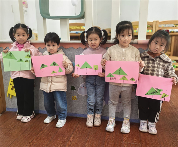活动中,小班教师通过图片和视频向幼儿介绍了“植树节”的由来,让他们感受自然之美,了解环保的重要性,并学会如何保护我们身边的环境,这在他们的心中播下了绿色希望的种子。随后,幼儿们用画笔和彩纸勾勒出他们心目中春天的样子。