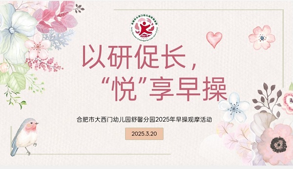 为促进园所间的紧密交流,提高早操质量,培养幼儿动作的协调性、灵活性发展,2025年3月19日、20日,合肥市大西门幼儿园舒馨分园、馨和分园在合肥市大西门幼儿园舒馨分园、馨和分园党支部书记、总园长周媛的统一部署下,保教室主任季云的带领下,开展了“以研促长,‘悦’享早操”为主题的早操观摩和环境互观教研活动。全体教师及联盟园教师观摩学习并进行了研讨交流。