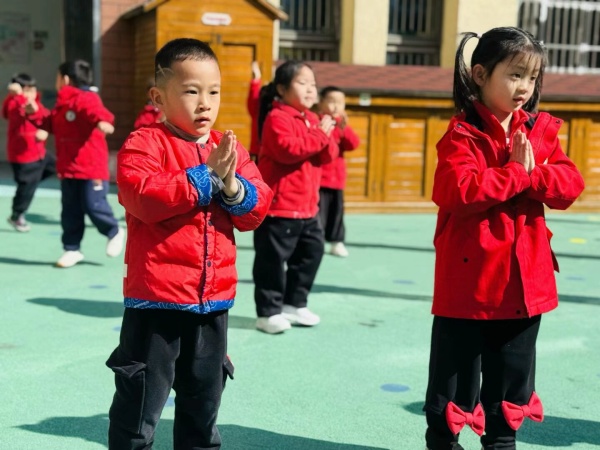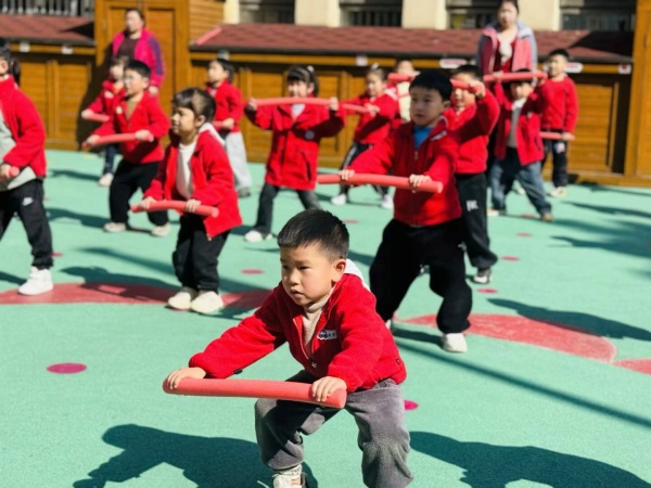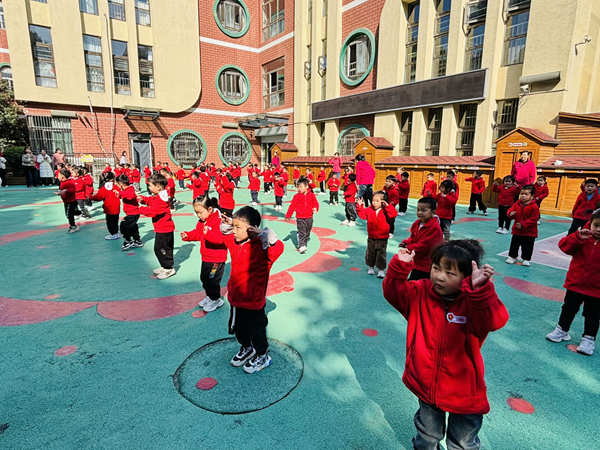 馨和分园的大班幼儿以筷子操为早操主要内容,随着节奏的敲击,清脆的声响此起彼伏,他们的动作刚劲有力,充满自信和光彩。中班幼儿手持花棍,随着动感的音乐翩翩起舞,动作整齐划一,棍影交错间,洋溢着无限活力。接下来登场的是小班幼儿,他们做着可爱的模仿操,模仿小兔子蹦跳、小鸟展翅、小蝌蚪游动……可爱极了。
