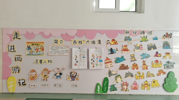 走进舒馨分园,各班级的环境布置无不展现出丰富多彩的创意。小班是色彩的天地,孩子们在画纸上用颜料拓出缤纷的图案,鲜明活泼的色彩搭配激发了他们对世界的好奇心和探索欲望。中班则以《西游记》为创作主题,通过绘画和手工活动生动地再现了师徒四人取经的传奇故事,让孩子们亲身体验到传统文化的魅力。大班是以非遗为主题,幼儿亲手制作的一件件泥塑作品,充分激发了他们对传统文化的热爱。此外,时光照相馆更是让幼儿有机会穿上古装,穿越时空体验古代人的生活方式。